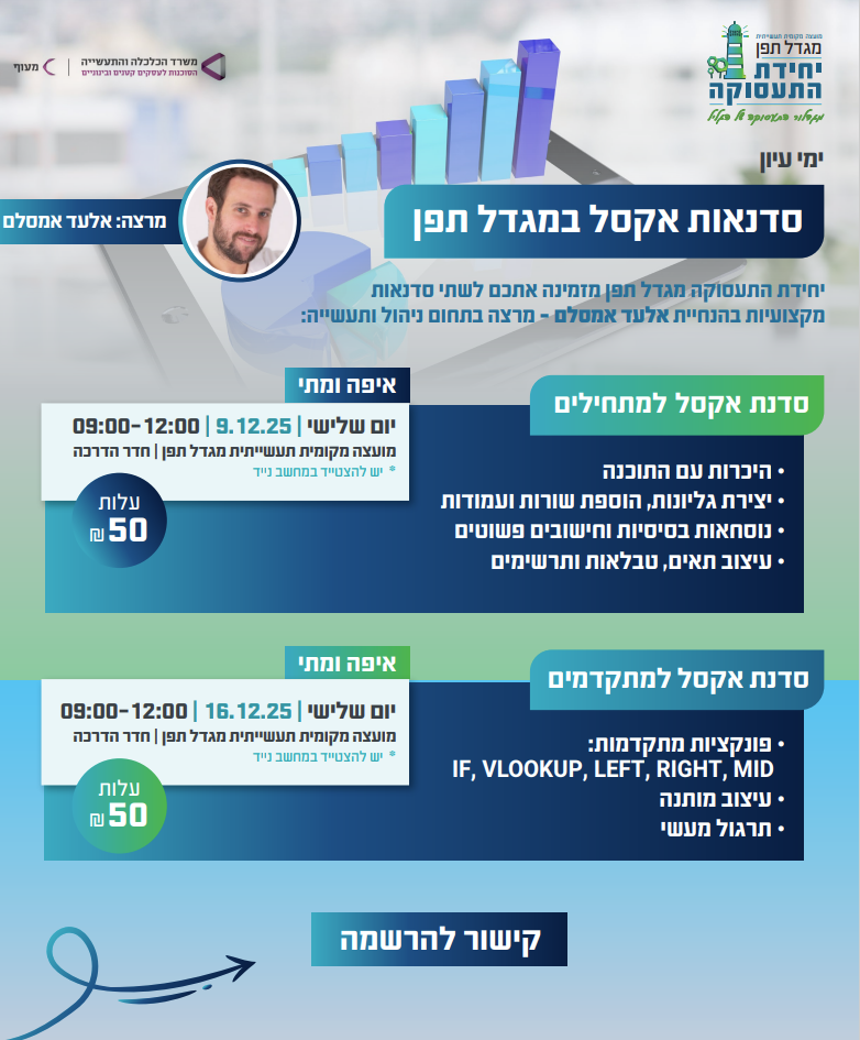 קישור להרשמה- סדנאות אקסל מגדל תפן
